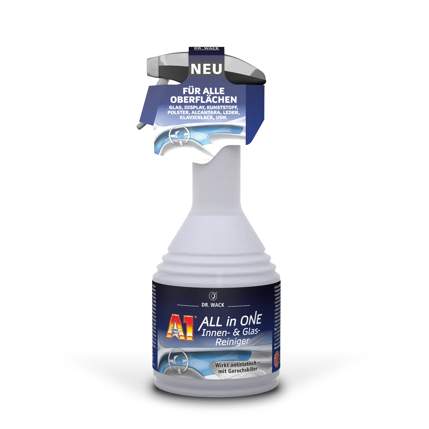 Mit dieser innovativen Formel reinigst Du Deinen kompletten Innenraum – inklusive Glasflächen, Displays und sogar der Außenscheiben – schonend, gründlich und komplett streifenfrei.